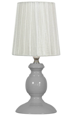 Lampe de table élégante, base en métal peint en gris avec un abat-jour blanc.