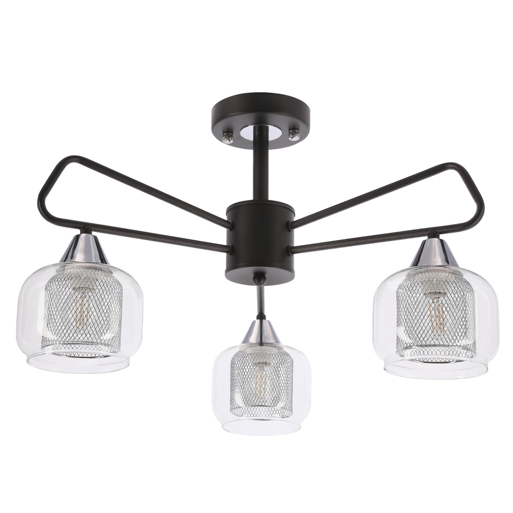 GATO lampa sufitowa czarny 3x40W E14 klosz szklany bezbarwny+chromowy