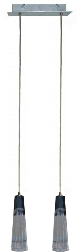 Wisząca lampa na 2 źródła światła, podstawa w kolorze chrom.