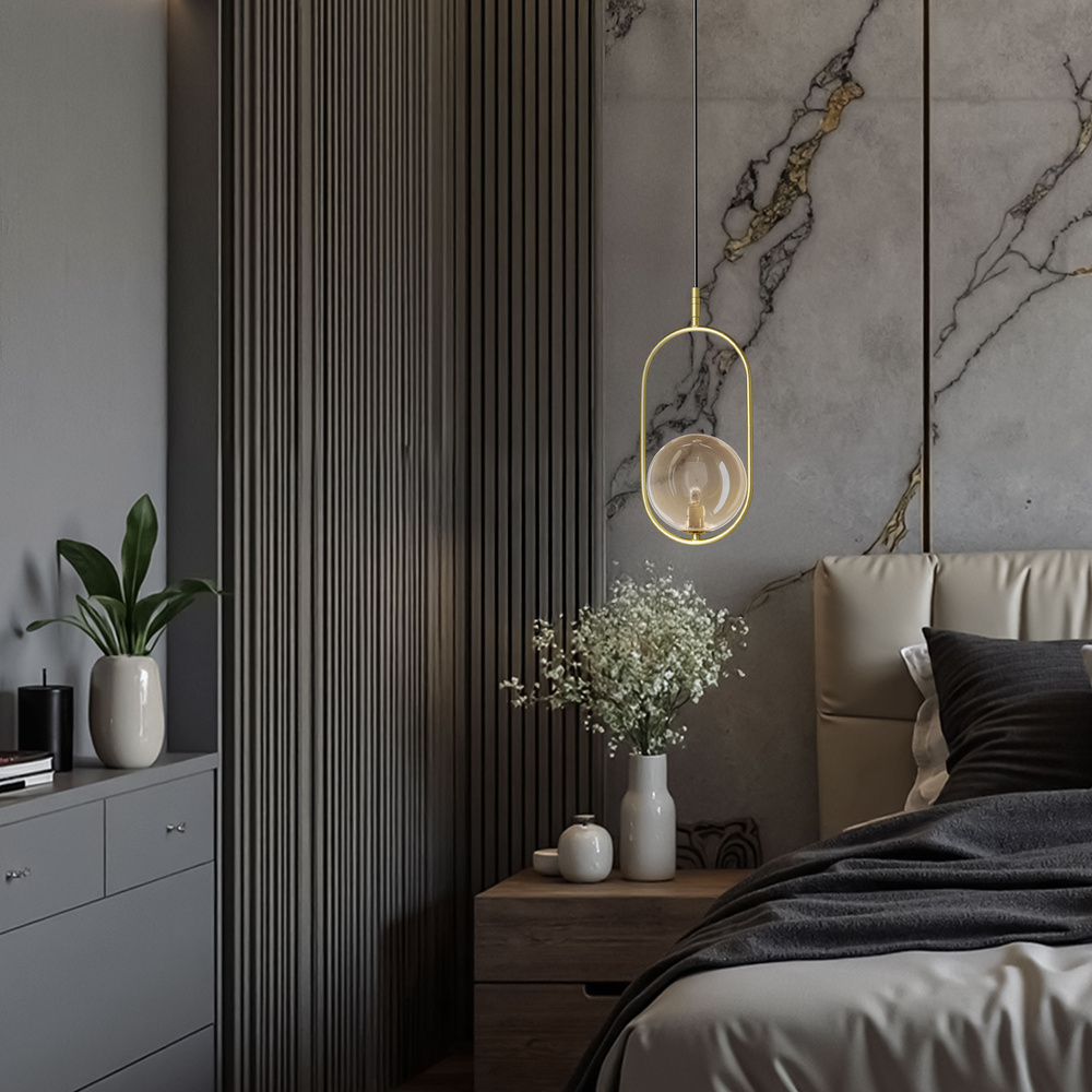 Dzięki eleganckiemu wykończeniu i niewielkim rozmiarom lampa wisząca CORDEL doskonale sprawdzi się jako oświetlenie salonu w strefie relaksu, elegancka lampa do jadalni czy stylowy akcent w łazience, zawieszony obok lustra. Bursztynowy klosz wprowadza przyjemne, rozproszone światło i ociepla aranżację wnętrza, tworząc przytulny i nastrojowy klimat. Jego szklana, lekko przydymiona powierzchnia dodaje lampie elegancji i subtelnie filtruje światło. Lampa świetnie komponuje się z aranżacjami w stylu nowoczesnym, japandi, boho, vintage oraz modern classic – tam, gdzie cenione są miękkie formy, ciepłe barwy i estetyczna harmonia.