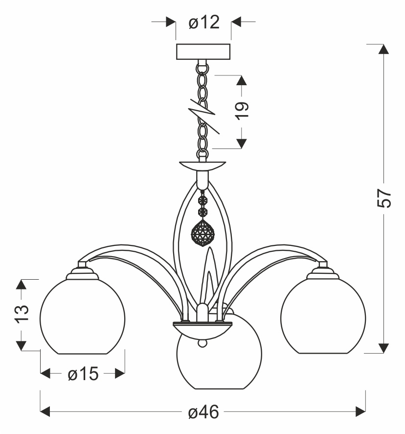 zawiesie stalowe, klosz szklany