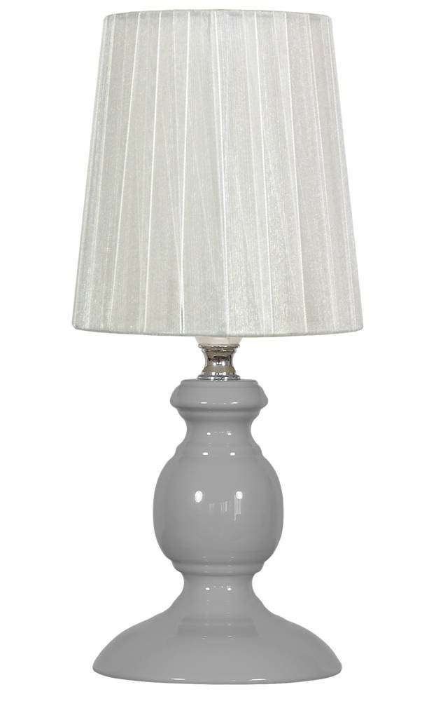 Lampa de masa eleganta, baza metalica vopsita in gri cu abajur alb.